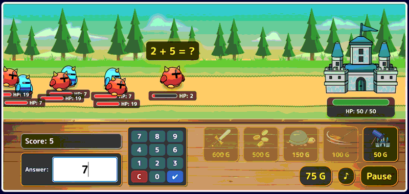 is an exciting educational game that fuses arithmetic drills with classic tower defense. Your castle is under siege by a horde of adorable monsters, and your greatest and only weapon is your brain!